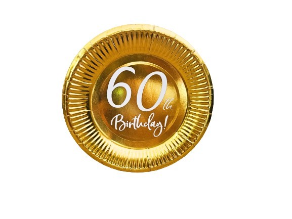 Talerzyki papierowe złote na 60 urodziny, 7cali 6szt