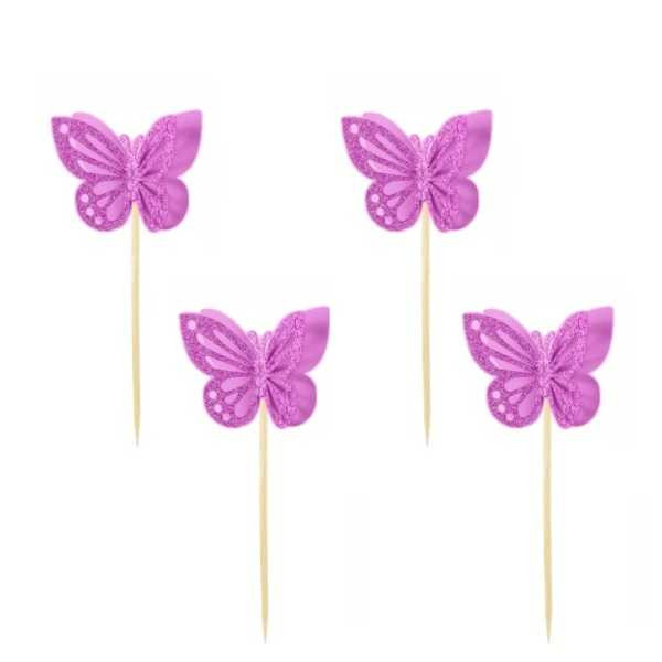 Topper na ciasto, tort babeczki Motylki 4szt, 3d błyszczące