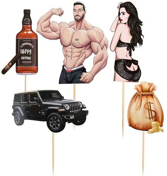 Topper na ciasto, tort babeczki Wieczór kawalerski dla chłopaka 5szt
