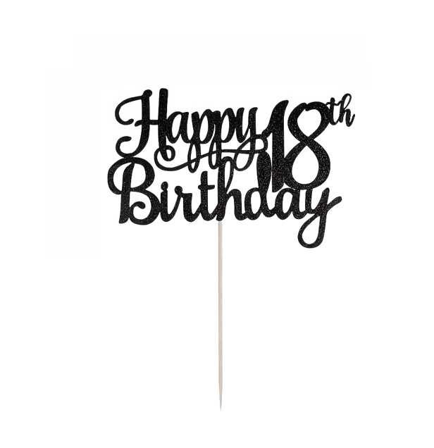 Topper na ciasto, tort Happy Birthday 18 urodziny, błyszczący