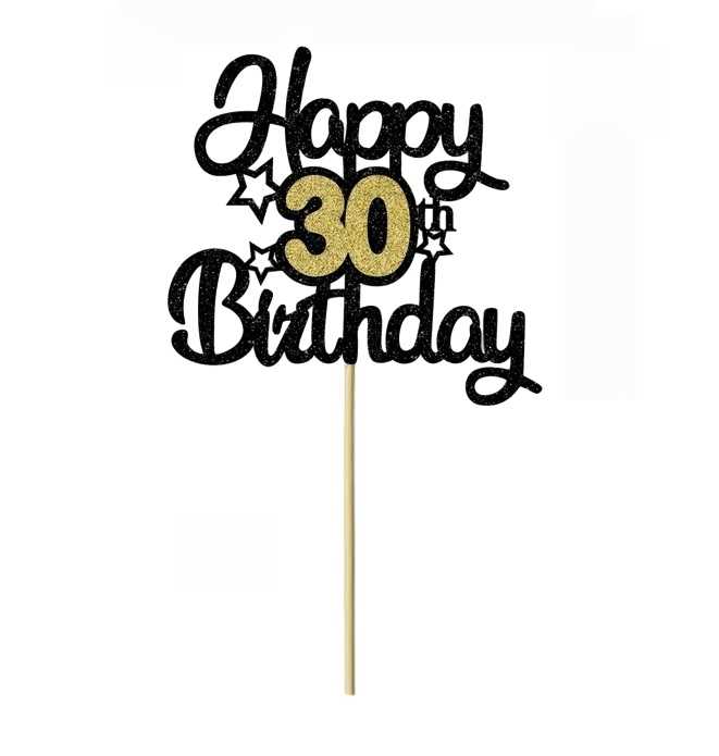 Topper na ciasto, tort Happy Birthday 30 urodziny, błyszczący