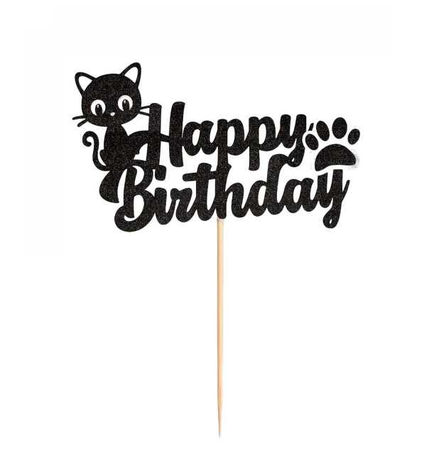 Topper na ciasto, tort Happy Birthday Kotek, błyszczący