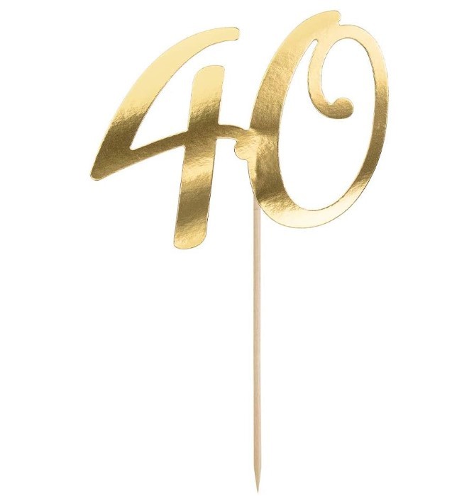 Topper na tort 40 urodziny , złoty