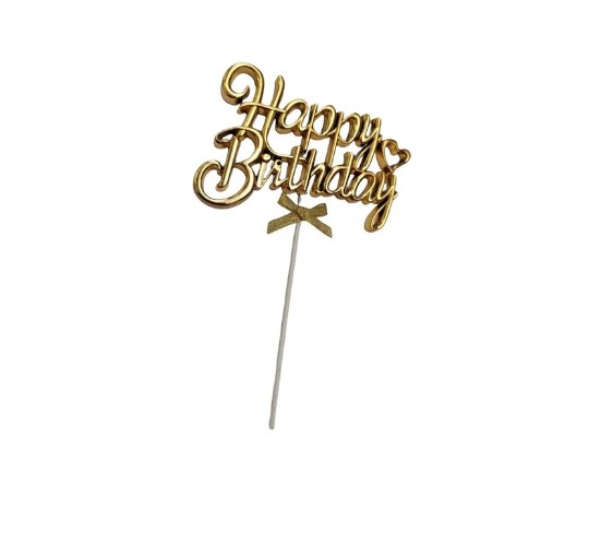 Topper na tort Happy Birthday złoty