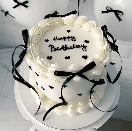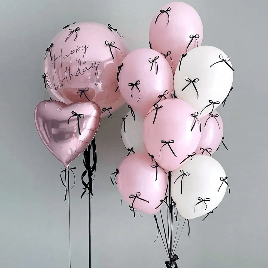 Topper na tort kokardka czarna, ozdoba na tort balony 10szt