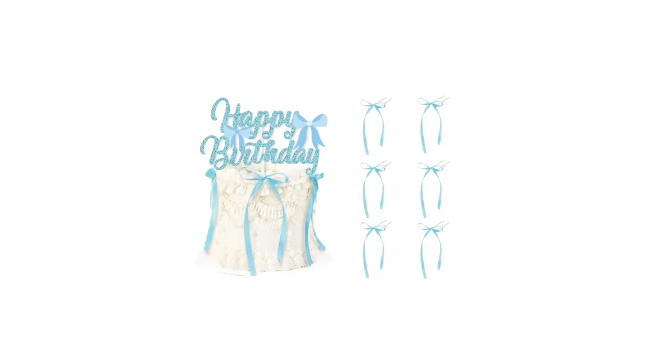 Topper na tort kokardka niebieska, ozdoba na tort balony 10szt