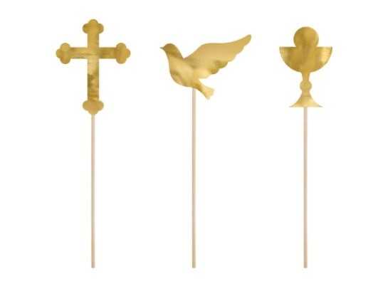 Topper na tort Pierwsza Komunia Święta , złoty 6szt