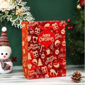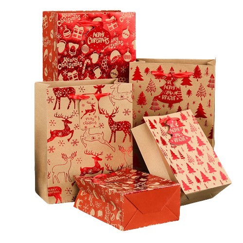 Torebki na prezenty Świąteczne Merry Christmas 12szt mix rozm.S